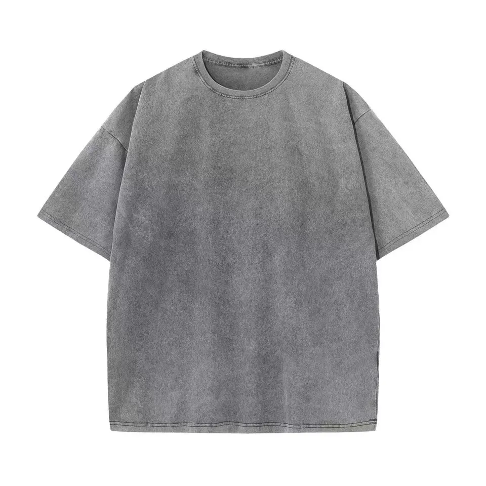 Heavyweight 100% cotton oversized t-shirt for women with a boat neckline and short sleeves. Features vintage acid-wash design and customizable logo printing. Breathable, eco-friendly, anti-shrink, and quick-dry properties make it perfect for casual everyday wear.